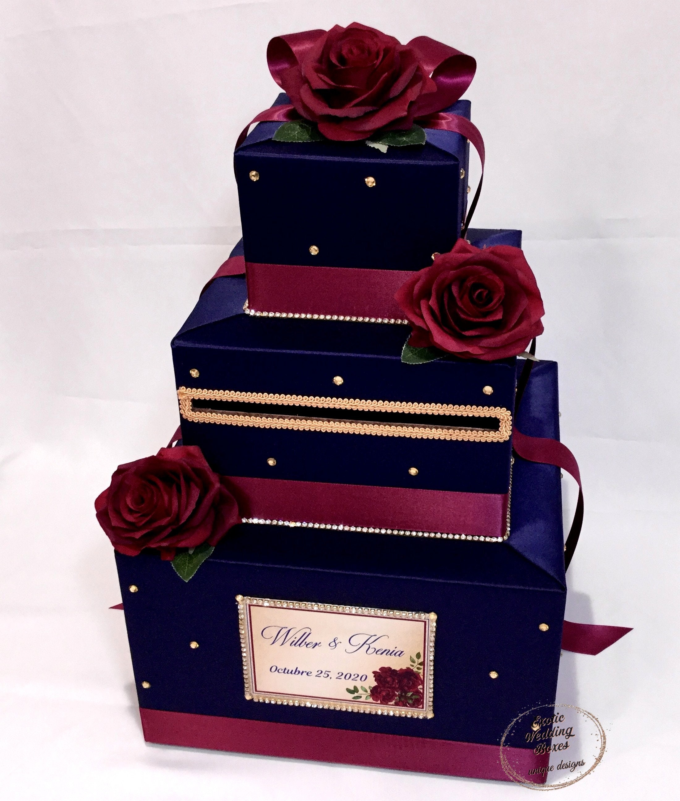 Navy Blue And Burgundy Wedding Card Box With Gold Rhinestones Etsy